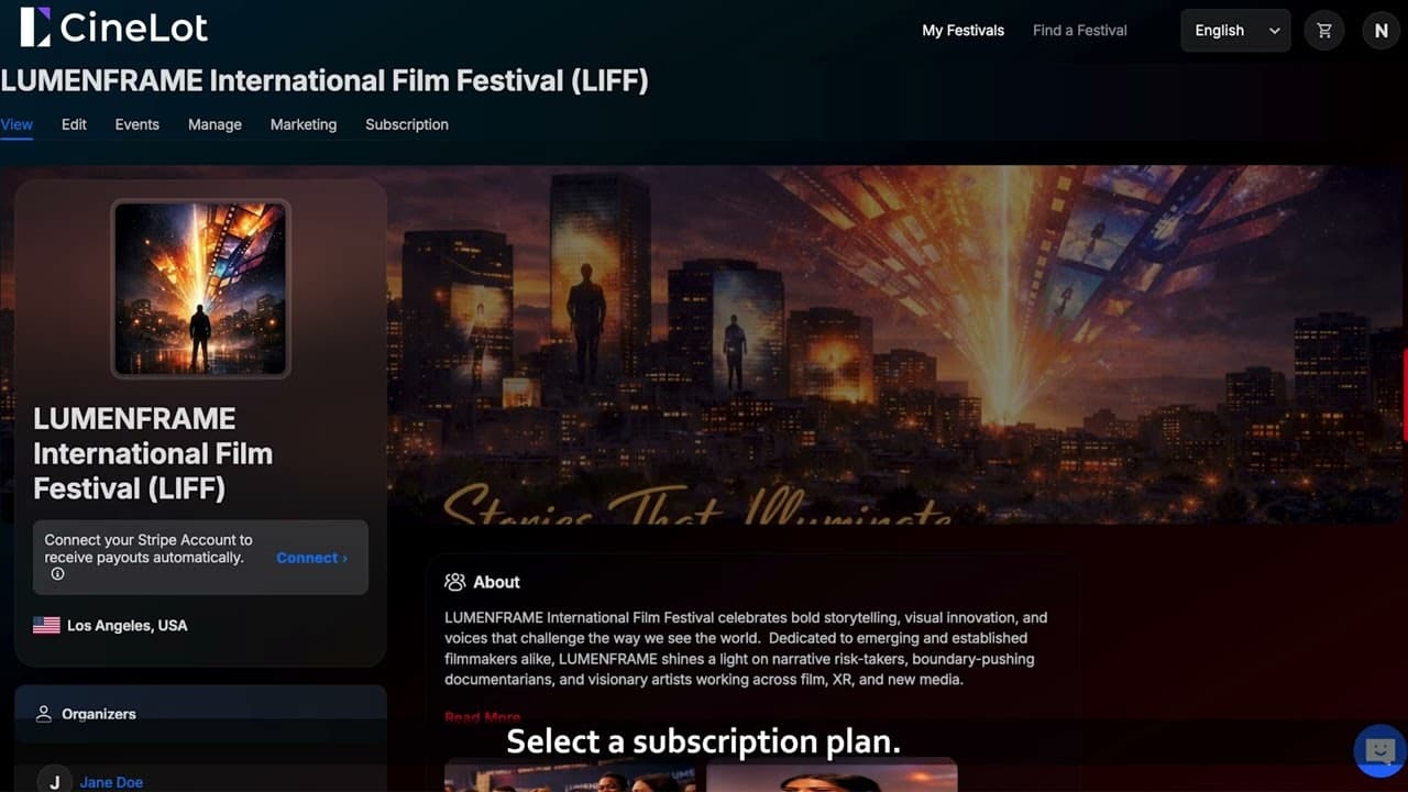 CineLot powers the entire festival journey - from submission to programming, screening and distribution Upload once • Submit to festivals • Let your film travel